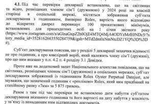 На фото/видео жены в Instagram 2024 Хандусенко с часами, которые напоминают Rolex Oyster Perpetual Datejust (стоимость оригинала 8700 евро).