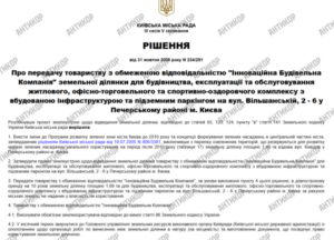 Две земельные участки под запланированной застройкой с 2005-2006 годов решением Киеврады были переданы в аренду ООО «Украинский фонд развития регионов» и «Инновационная строительная компания», и до сих пор действие аренды продлено.