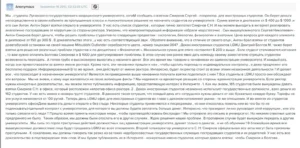 По нашей инсайдерской информации, начиная с октября 2021 года Сергей Смирнов будучи ректором государственного университета, фактически, находится в сговоре со своей де-юре бывшей, а де-факто женой Мариной Смирновой и своим сыном Антоном Смирновым. Вместе они создали частный учебный заклад, который для своего функционирования и оформления лицензий использует материально-техническую базу Луганского государственного медицинского университета. По предоставленной нашей редакции информации, во время официальных лицензионных и плановых проверок – оборудование, манекены и документы – учебные планы, программы привозятся из ЛДМУ (который ныне перемещен в город Ровно), после чего возвращаются обратно.